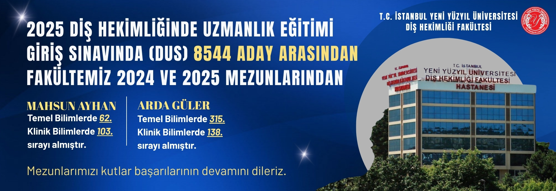 Diş Hekimliği 2025 ÖSYM başarı sıralamasında (%25 – %50 burslu ve ücretli) İstanbul’da 1. Türkiye’de 2. sırada